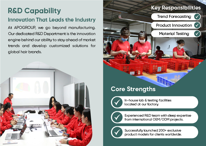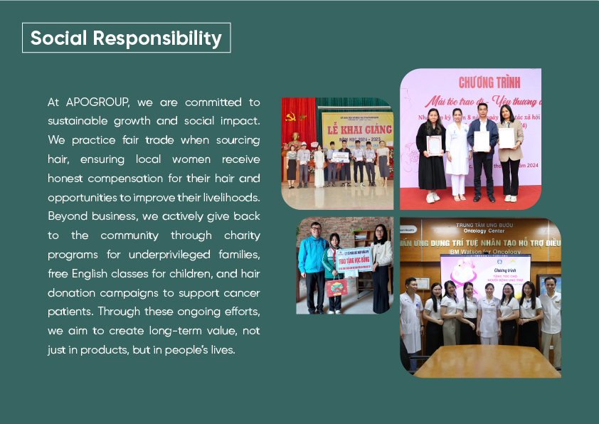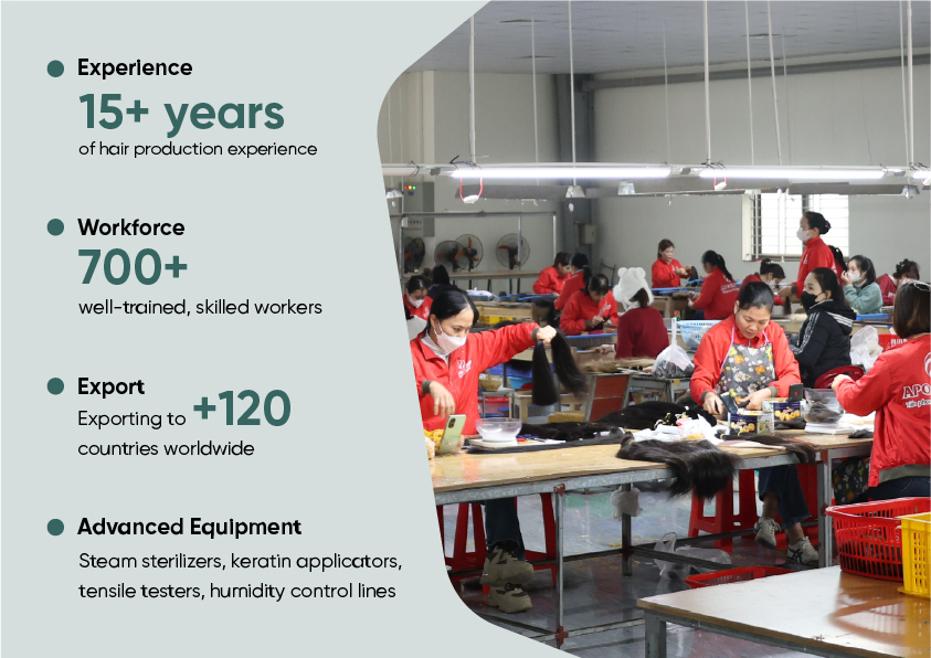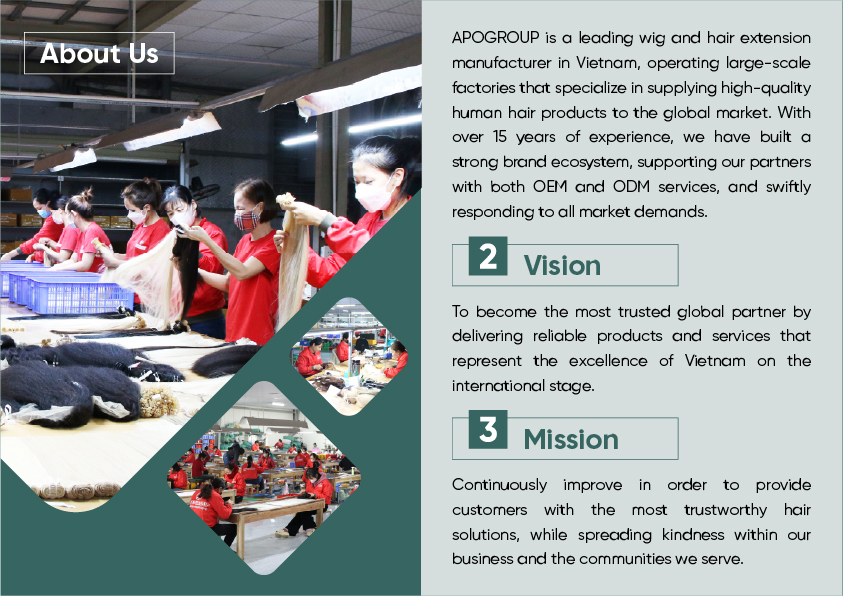 Founded in 2011, APOGROUP has grown from a trusted Vietnamese hair manufacturer into a global leader, supplying premium hair extensions to over 120 countries. With a commitment to ethical sourcing, international compliance, and social responsibility, we deliver more than just products—we build lasting trust.